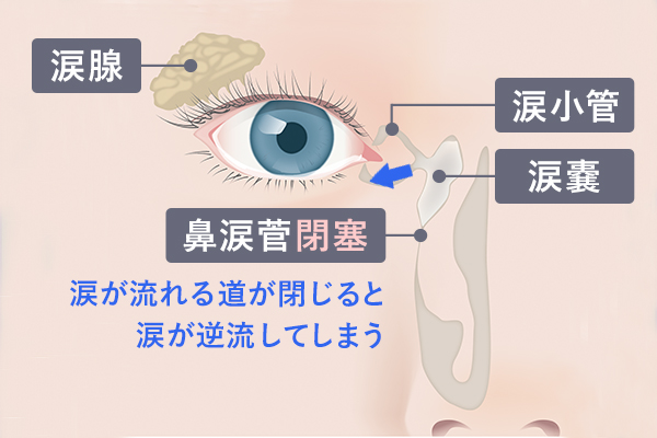 また涙嚢内部に溜まってしまったなみだが、ばい菌の繁殖の温床になり、涙のう炎という状態を引き起こすことがあります。